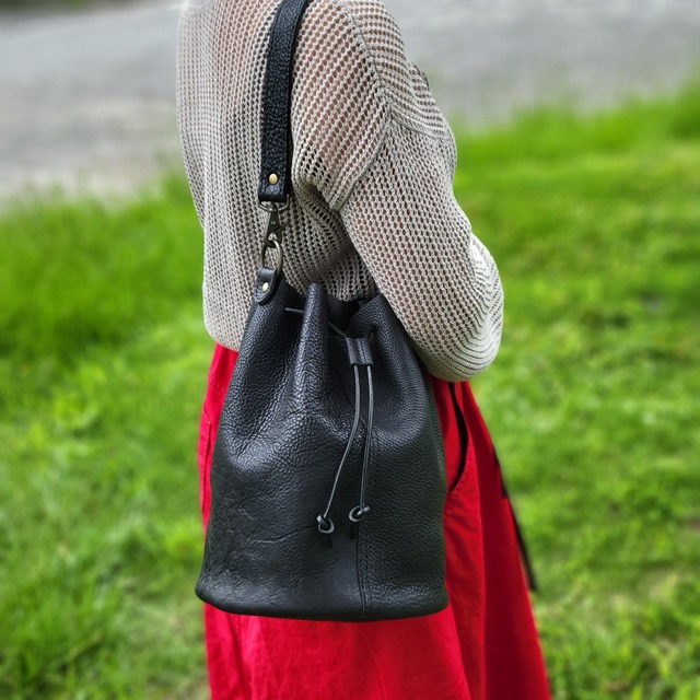 シュリンクレザーブラック 肩掛け サイズ 縦27センチ、横20センチ 荷物がたっぷり入ります